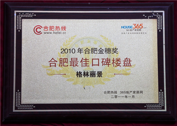2010年合肥金穗奖最佳口碑楼盘(格林丽景)