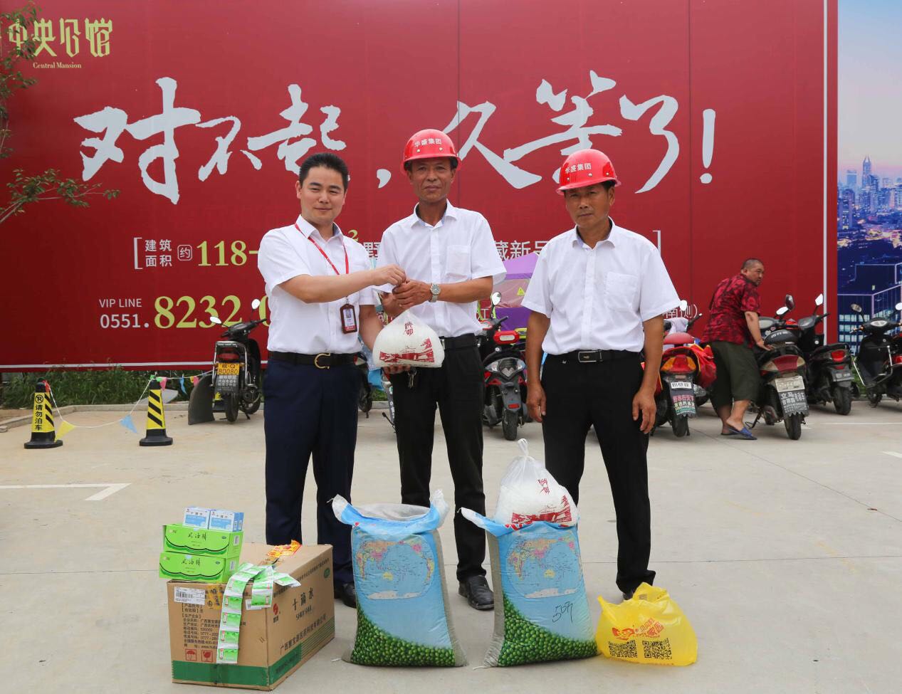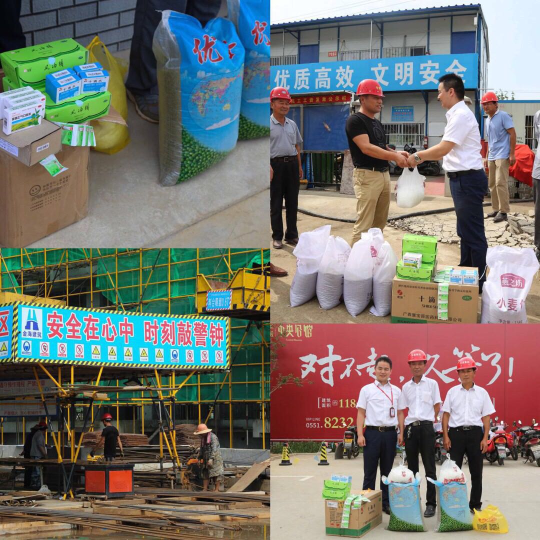 2018年7月伊始,骄阳似火,今年的高温天气又来了,华盛集团的各个工地项目仍在紧锣密鼓、热火朝天地持续推进。为做好防暑降温工作,保障华盛集团一线项目部员工的健康权益。集团公司人力资源部朱经理,受集团公司领导委托顶着烈日来到集团公司“华盛南院”、庐江“华盛·江山御府”、巢湖“华盛·中央公馆”、“华盛·大运城三期”等项目工地,为工地现场的员工们发放了藿香正气水、仁丹、冰糖、绿豆和风凉油等防暑降温物品。把清凉送到了施工一线,把关怀送到员工身边。
