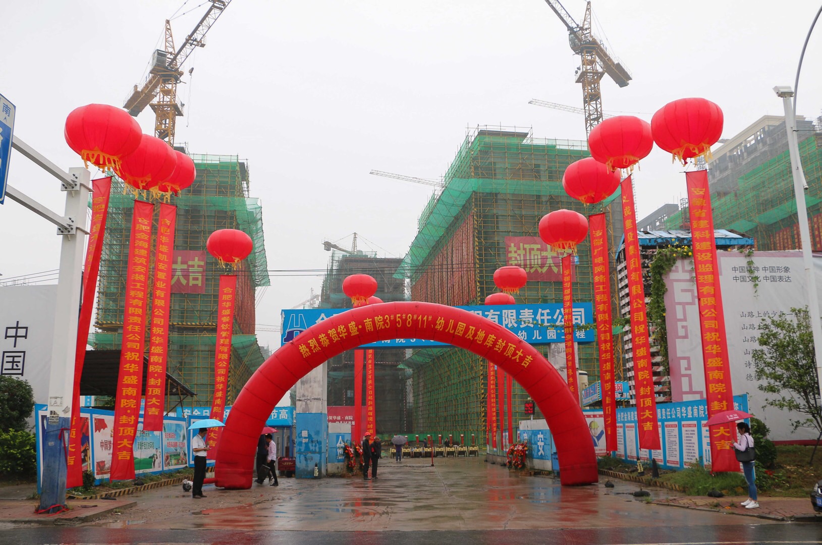匠心独运,东城瞩目,喜封金顶。2018年9月21日上午,由合肥华盛凯达置业有限公司开发的华盛·南院3#楼、5#楼、8#楼、11#楼、幼儿园及地库封顶仪式盛大举行,精品住宅在现场一阵阵响彻云霄的礼炮声中揭开其面纱。安徽华盛发展集团有限公司相关领导,监理单位领导及项目部负责人,施工单位领导及现场施工人员至现场参加封顶仪式。