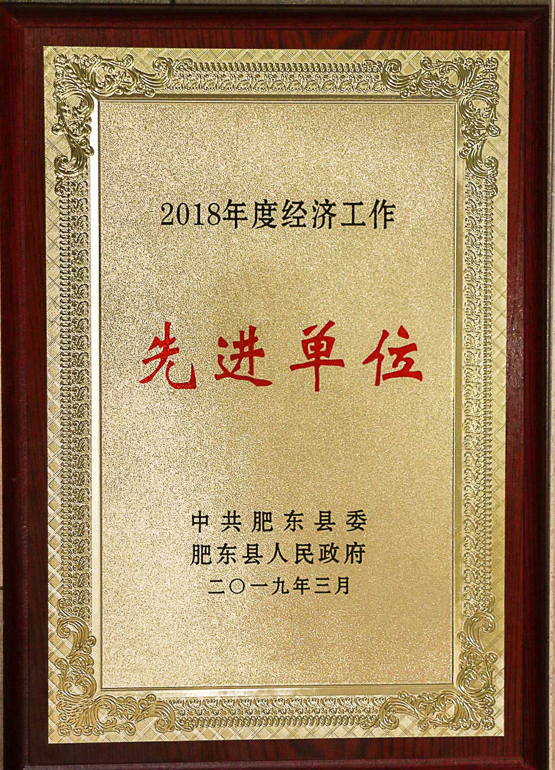 千亿买球荣获肥东县2018年度“特别贡献企业”荣誉称号