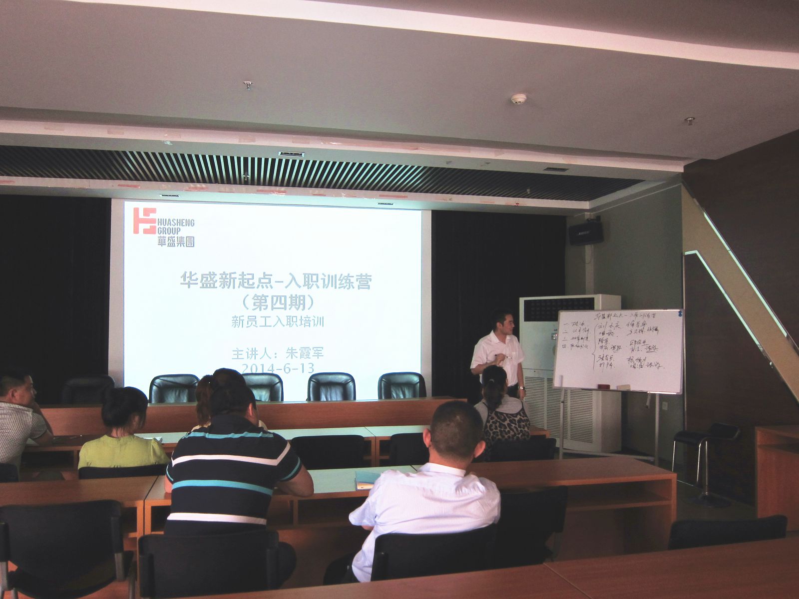 “华盛新起点-入职训练营”第四届新员工入职培训于2014年6月13日在集团多媒体室召开。本次培训由集团公司人力资源经理朱霞军主讲,参训人员为自5月5日入职的7名新员工。入职培训围绕公司千亿买球、企业文化、行政规范和人力资源相关规范等内容进行了介绍,并以公司2013年度通过评审并印发的《员工手册》为基础,重点对员工的入离职、考勤、薪酬、福利、培训发展基础制度作出详细解释。